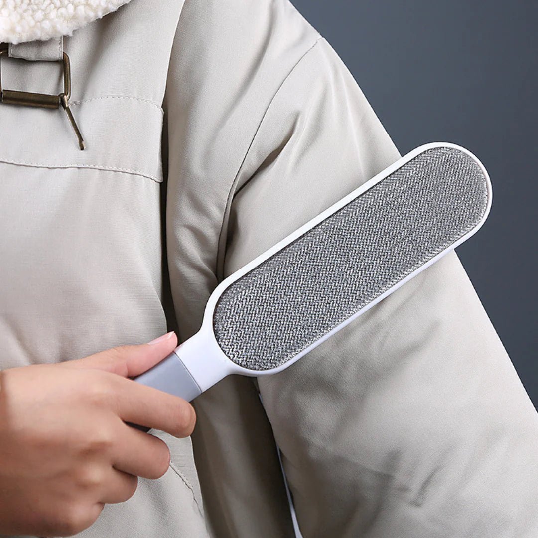 É aqui que a nossa escova inovadora entra, aclamada como a melhor do mundo para remover pelos de roupas e sofás. Ela não só remove eficazmente os pelos, como também se auto-limpa e armazena os resíduos em um compartimento interno, tornando a limpeza um processo simples e rápido.