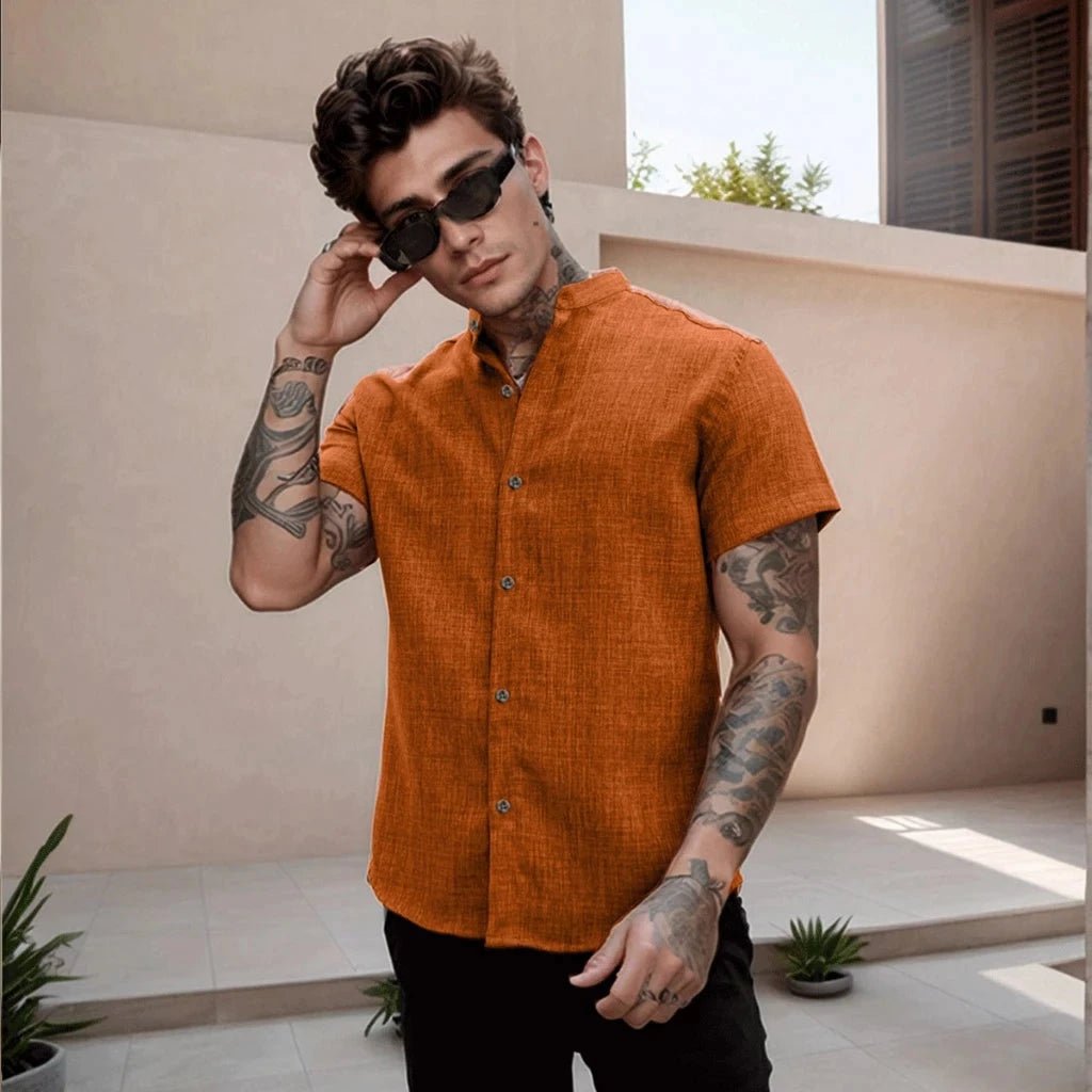 O tecido em linho não apenas mantém seu corpo fresco, mas também traz um toque suave e nobre à peça. Seja para um almoço importante, um evento especial ou para o look casual de final de semana, essa camisa entrega estilo com leveza.