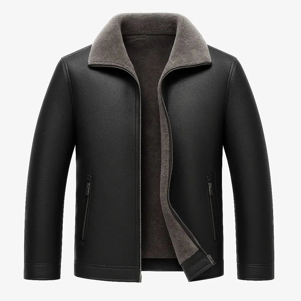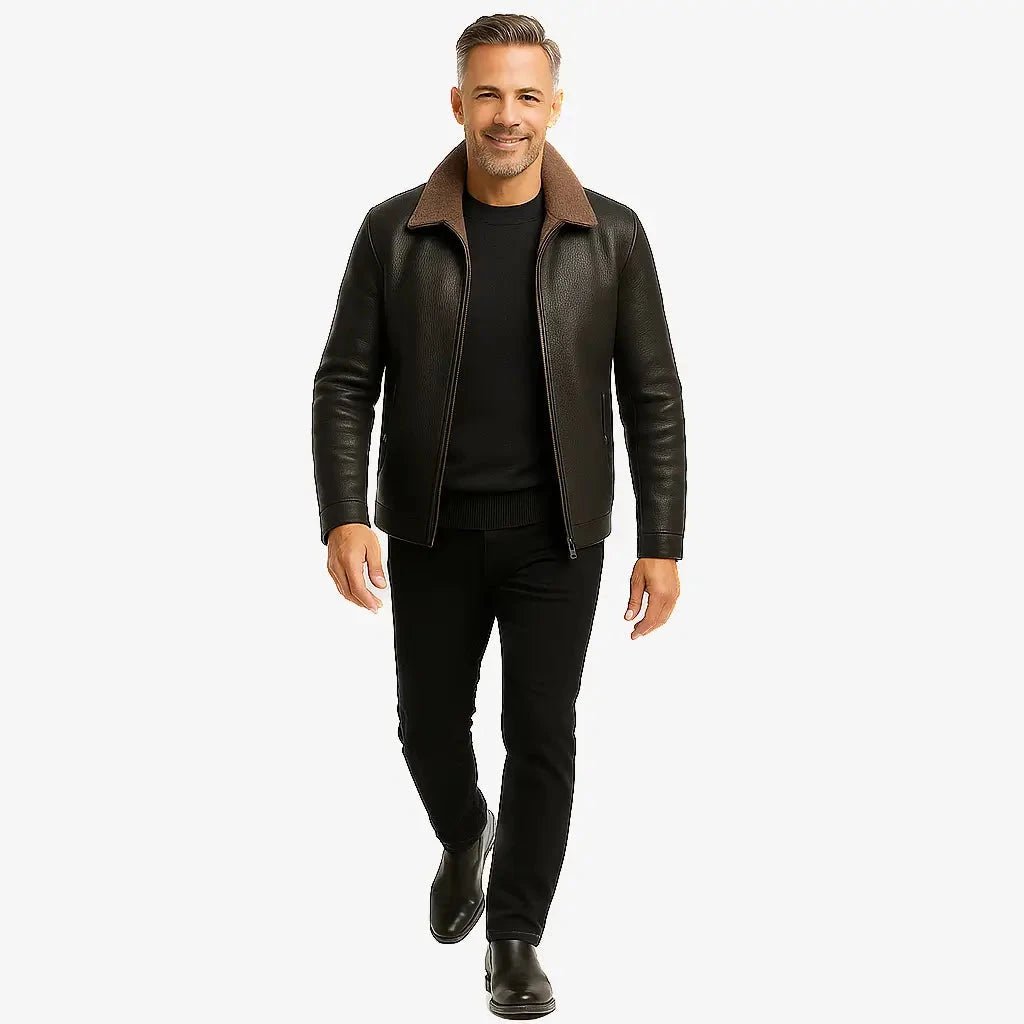 Com design robusto e toque sofisticado, esta jaqueta masculina combina couro de alta qualidade com forro interno espesso em cashmere, proporcionando conforto térmico ideal para os dias mais frios.