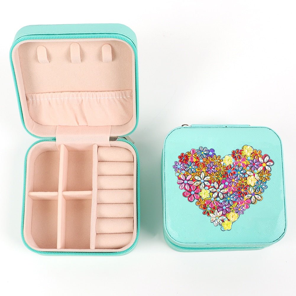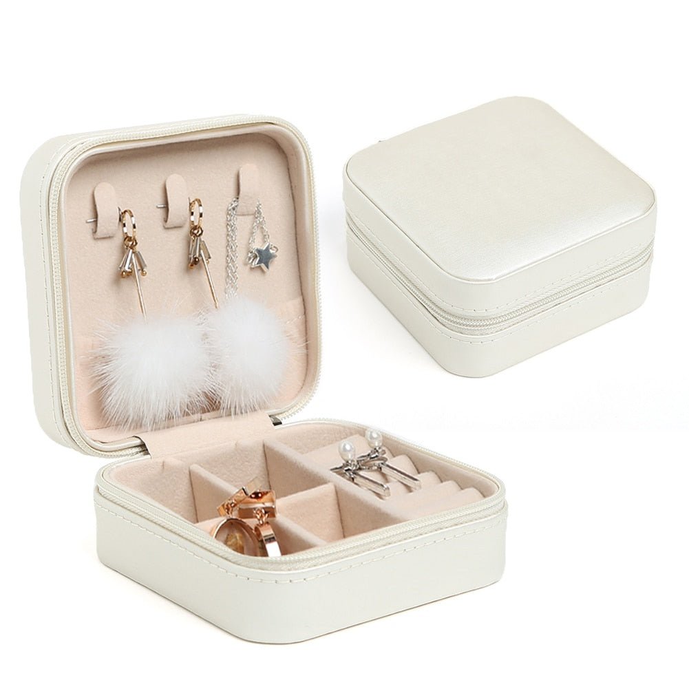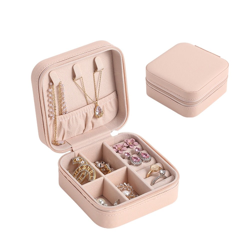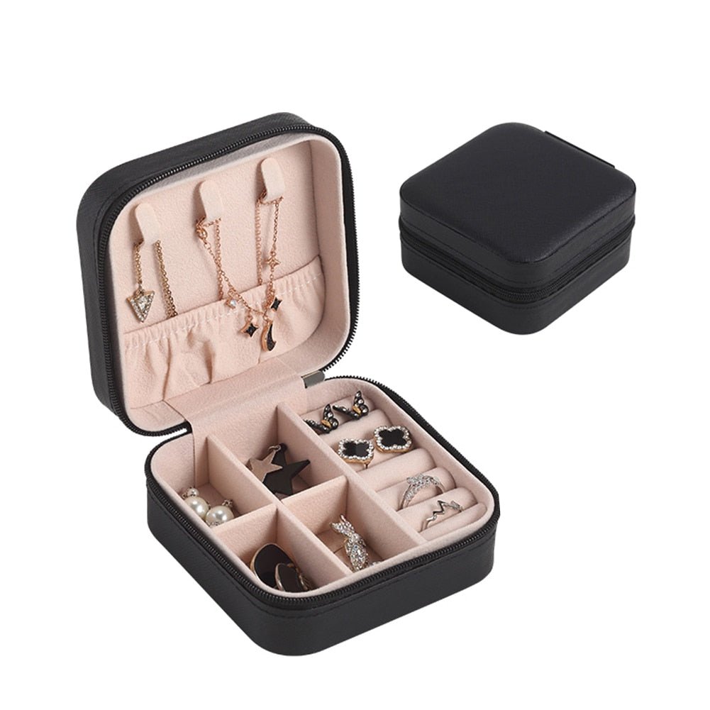 O exterior rígido da caixa de joias é mantido com um zíper, para garantir que todas as suas joias sejam mantidas em segurança.