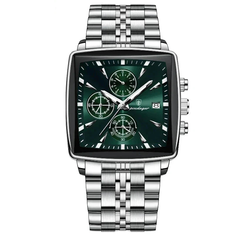 O Relógio Olímpio é mais do que um relógio: é uma expressão de sofisticação, força e bom gosto. Com mostrador quadrado robusto, corpo em aço inoxidável e acabamento de luxo, ele foi criado para homens que dominam cada ambiente que entram.